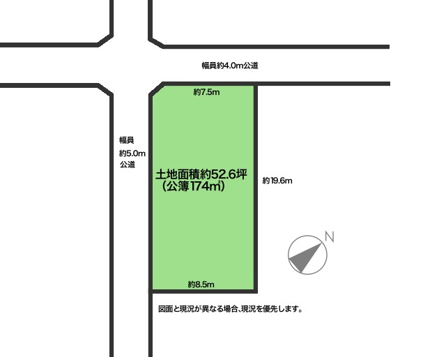 | 接道状況 | 角地 (南西側 公道5.0m) (北西側 公道4.0m) | ||